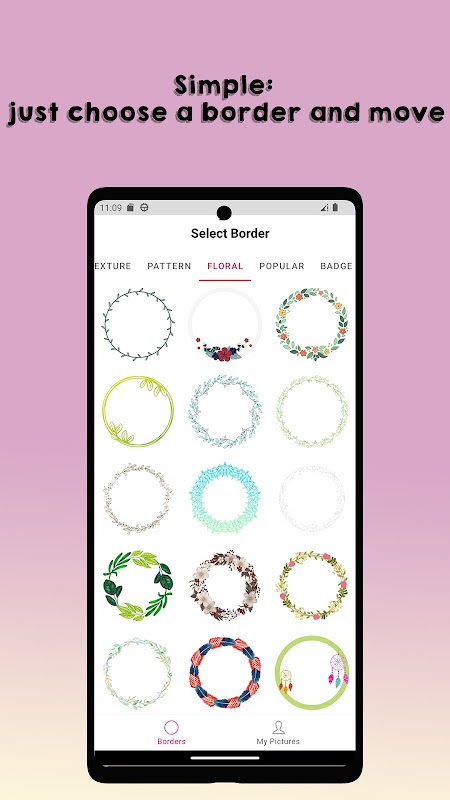 Profile Picture Border Frame to idealna aplikacja dla tych, którzy chcą uatrakcyjnić swoje zdjęcie profilowe i wyróżnić się z tłumu. Dzięki szerokiej gamie pięknych i estetycznych ramek do zdjęć profilowych do wyboru ta aplikacja ułatwia zaangażowanie większej liczby odbiorców w Twoim profilu i stworzenie oszałamiającego zdjęcia profilowego.