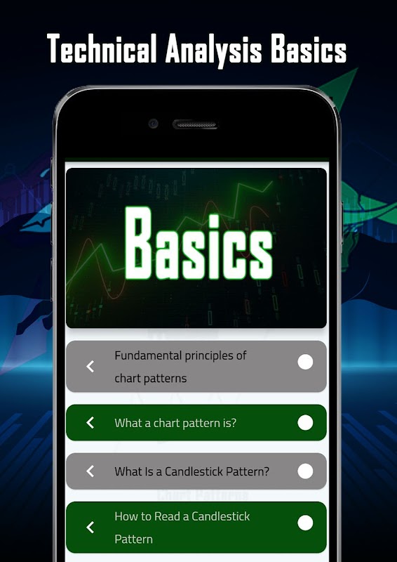 - Kompleksowe wzorce wykresów: poznaj szeroką gamę podstawowych wzorców wykresów technicznych. Nasza aplikacja zawiera szczegółowe przykłady i wyjaśnienia, które pomogą Ci zrozumieć i skutecznie wykorzystać te wzorce w swojej strategii handlowej.