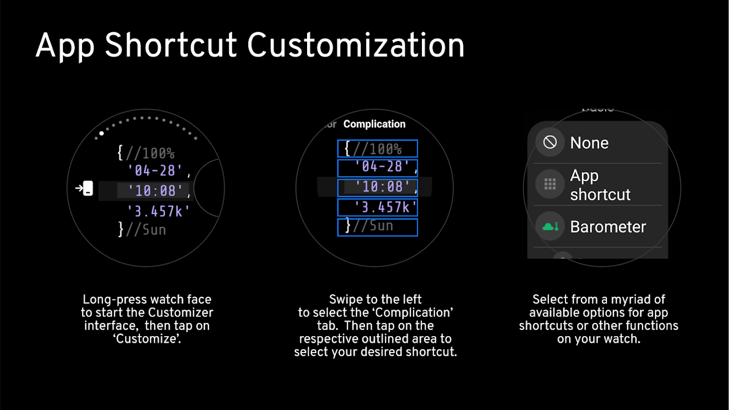 WSKAZÓWKA: jeśli ustawisz „Ostatnie aplikacje” i „Ustawienia” jako skróty do aplikacji, możesz łatwo uzyskać dostęp do dowolnej uruchomionej aplikacji, a także szybko zamknąć wszystkie aplikacje działające w tle – lub szybko przejść do dowolnego ustawienia zegarka. Ponieważ tarcza zegarka ma 5 niestandardowych skrótów do aplikacji, nadal masz 3 skróty do dostosowania!
