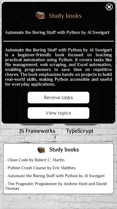 Ta aplikacja to Twój najlepszy towarzysz na drodze do zostania biegłym programistą. Niezależnie od tego, czy aspirujesz do tworzenia własnych aplikacji, stron internetowych, czy zagłębiasz się w dziedzinę nauki o danych, ta aplikacja zapewnia Ci kompleksowe zasoby, dzięki którym będziesz mógł rozwijać się w świecie programowania.