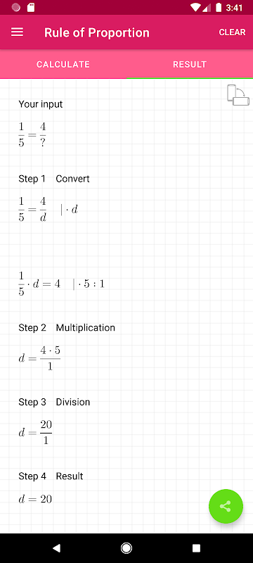 Proporcje nie stanowią już problemu. W tym celu należy wprowadzić tylko 3 z 4 zmiennych. Wszystkie obliczenia są przechowywane w historii. Ostateczne rozwiązanie można udostępnić.