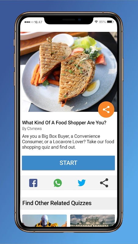 - E-mail i udostępnianie quizy na Facebooku, Twitterze, WhatsApp i więcej
