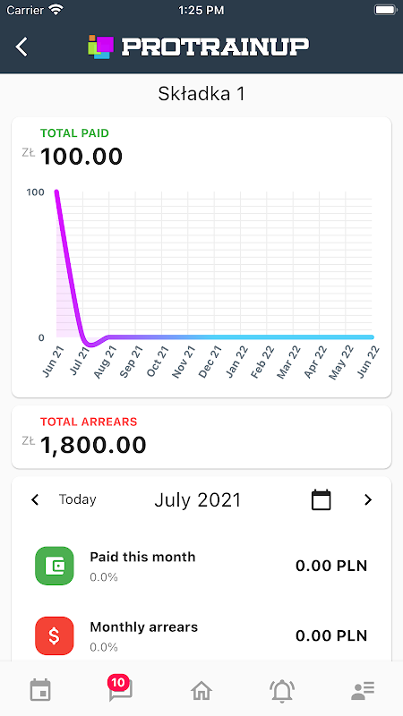 • Składki – kontrola bilansu składek oraz możliwość zapłacenia za składkę poprzez aplikację.