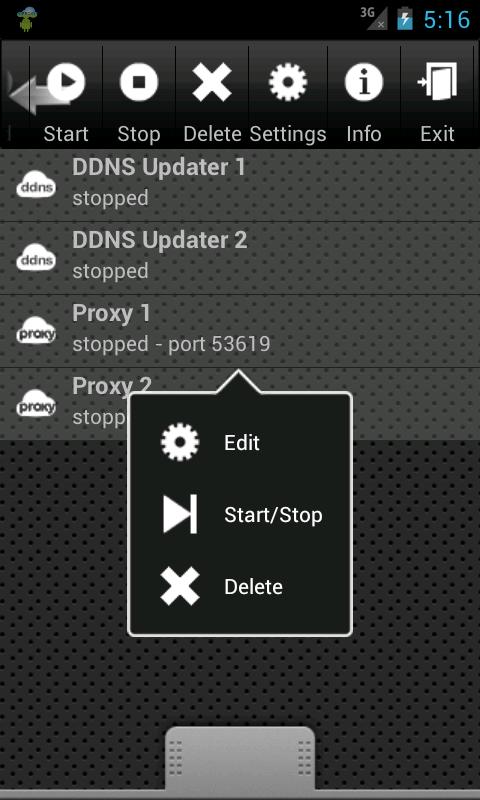 In this version you can add one server (Proxy, or Dynamic DNS Updaters), three rules and if set, three allowed IP’s. If you want to be able to add unlimited items please buy Proxy Server Pro. If you buy the pro version you will support development, will be able to add unlimited items and see no advertisements!