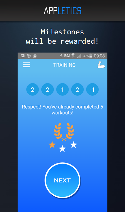 This app is not simply and solely about achieving 20 pull-ups. It's also about creating determination and persistence within you! Therefore, even smaller milestones will be rewarded during the workout, helping you staying on track!