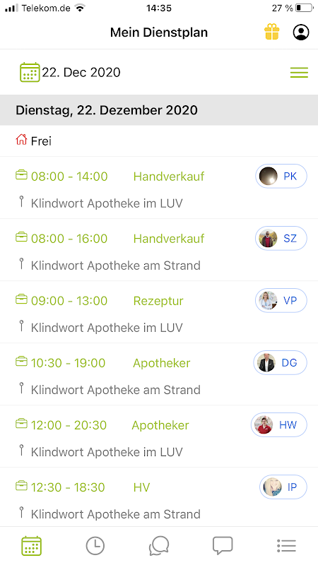 Mój harmonogram dyżurów: wyświetl godziny pracy i nieobecności, a także godziny pracy swoich współpracowników. Chcesz wiedzieć, z kim będziesz jutro pracować wieczorem na kanapie? Nie ma problemu!