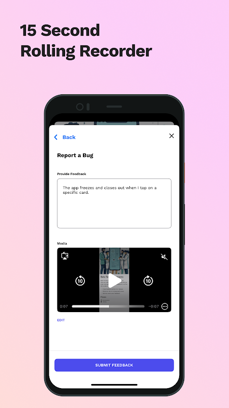 Wstrząśnij, aby przechwycić: pakiet SDK Pulse FlightRecorder jest aktywowany, gdy użytkownik potrząśnie swoim urządzeniem. Ta akcja rejestruje ostatnie 15 sekund aktywności na ekranie, umożliwiając użytkownikom zgłaszanie problemów lub sugerowanie ulepszeń na podstawie dowodów kontekstowych.