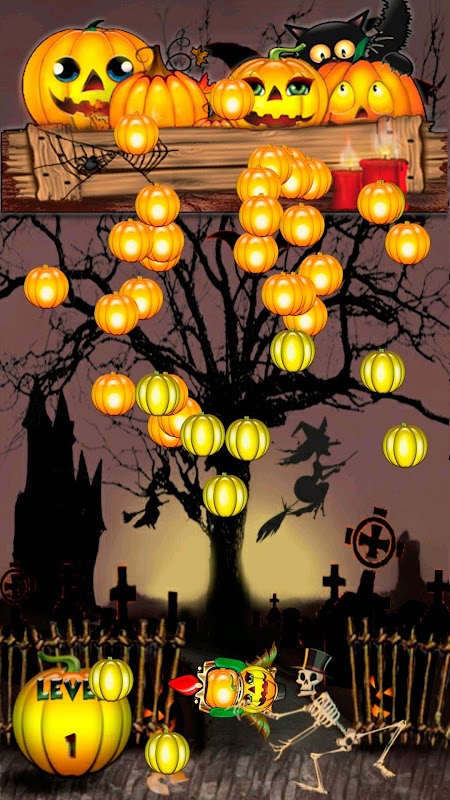 You will need to find the right angle and shoot the pumpkin in order to create groups of 3 or more pumpkins that have the same color. Shooting is as simple as tapping with your finger and blasting away the pumpkins. Of course, the more pumpkins you have the opportunity to pop, the better the score that you will receive in the end.