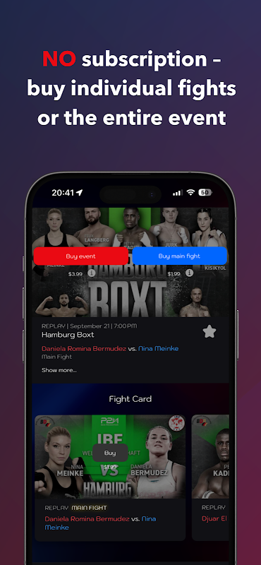 Witamy w PunchZone, najlepszej aplikacji dla fanów boksu! Oglądaj wydarzenia bokserskie na żywo z całego świata – bardziej elastyczne i niedrogie niż kiedykolwiek wcześniej.