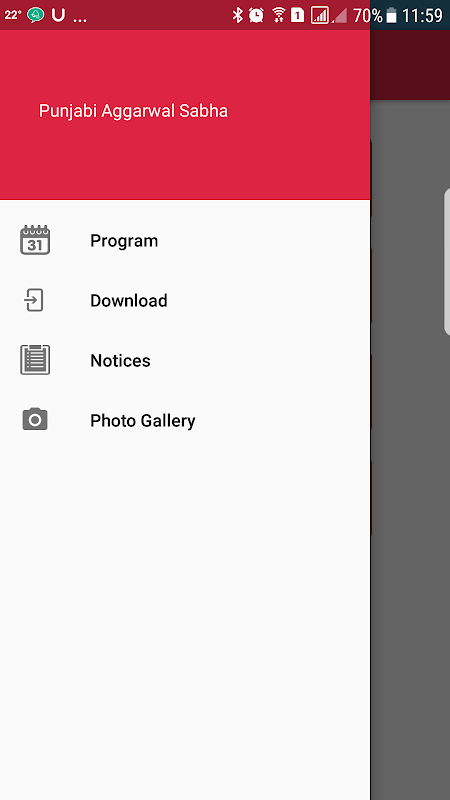 Pendżabski Aggrawal Sabha Sirsa Android App, w którym można uzyskać informacje i wydarzenia z Agrawal Samaj.