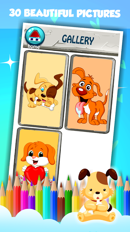 Przejdź na rynek i znajdź sensacyjne szkice najcudowniejszych stworzeń, które oczarują Cię momentem, w którym zaczniesz je pracować. Pobierz darmową aplikację Puppy Coloring Book i wejdź do świata najpiękniejszych zwierząt. Zawsze byli lojalni wobec nas i nawet powiedzenie, że pies jest najlepszym przyjacielem człowieka. To prawda, prawda czy nie. Weź sobie dziecko i zobacz sam sobie. Zwierzęta te kochają swoich właścicieli więcej niż kochają siebie i to jest niesamowite. Kliknij na wiadro z farbą i ozdobnij jedno z obrazów z zachwycającymi odcieniami, aby stworzyć najcudowniejsze stworzenie. Niektóre z nich są śmieszne z ich języków, że oddali tchnienie. Niech Twoje dzieci bawią się tą sensacyjną grą na swoich telefonach i wyrażają swoją kreatywność w najlepszy możliwy sposób. Dzięki najnowszej aplikacji do malowania szczeniaka będziesz miał niewyczerpane źródło zabawy dla członków rodziny.