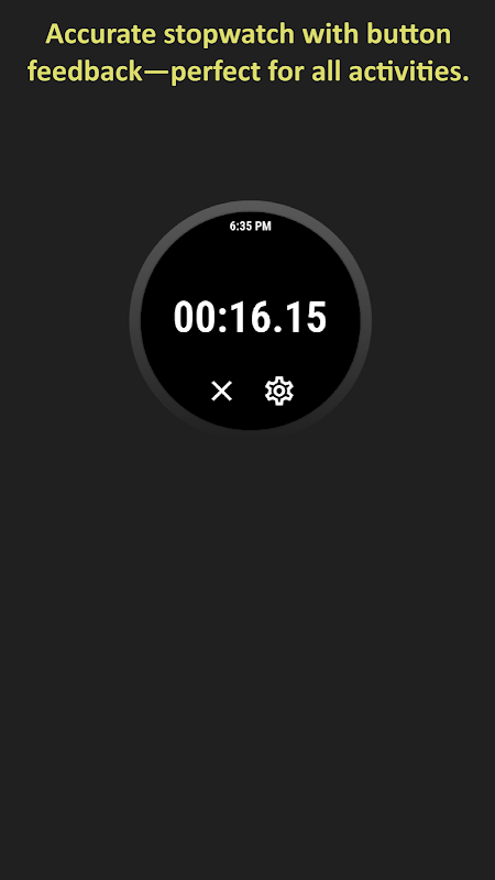 Większość smartwatchów blokuje lub wyłącza ekran pod wodą, co utrudnia korzystanie ze zwykłych aplikacji stopera. Nasza aplikacja umożliwia uruchomienie stopera przyciskiem „Wstecz” i zatrzymanie go dowolną czynnością wybudzania ekranu, np. naciśnięciem dowolnego przycisku lub obróceniem koronki. Działa bez zarzutu zarówno nad, jak i pod wodą, zapewniając informację dźwiękową i/lub wibracyjną, dzięki czemu zawsze masz pewność, kiedy stoper się uruchomi lub zatrzyma.