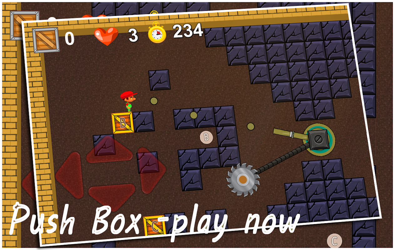 Popchnij pudełko w kierunku przypisanej mu pozycji i wygraj? Uważaj na wrogów i uciekaj przed nimi (duchem, armatą, ruchomą piłą ...)
