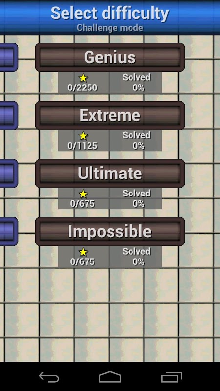 1. Tryb wyzwania - Opanuj swoje umiejętności rozwiązywania łamigłówek, próbując rozwiązać każdą łamigłówkę w jak najmniejszej liczbie ruchów. Im lepsze wyniki, tym więcej gwiazdek zbierzesz!