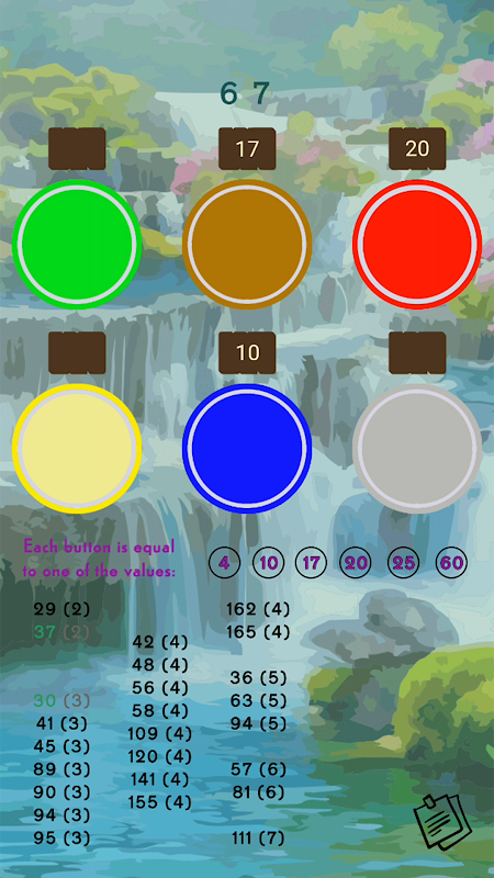 Train your math skills while playing. Game sence consists of hidden objects - numerical values. You must determine them and find all combinations of this puzzle to get points.