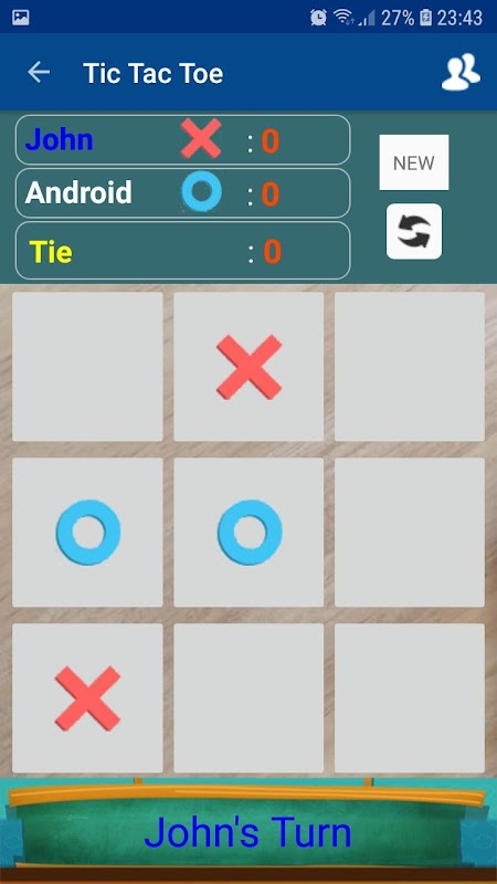 Jeden gracz (X) i przeciwnik to Android lub inny gracz (X). Mogą wybrać swój znak do gry.