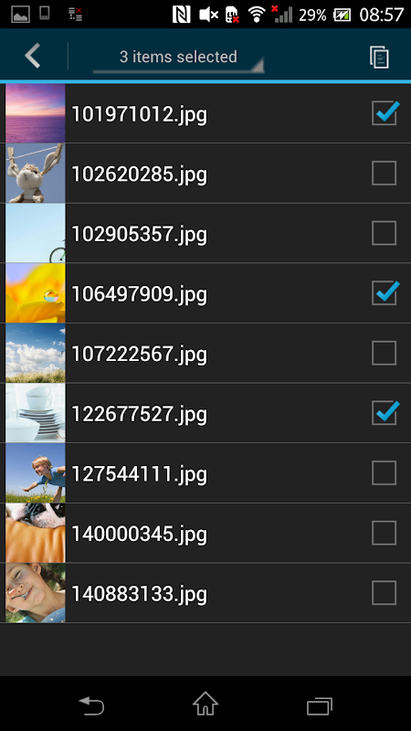 - Copy files between memory card inserted into PWS, USB device connected to PWS and Android device that you are operating.