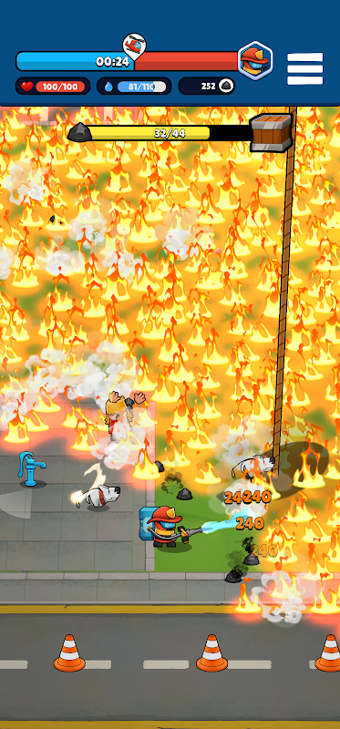 - Dynamiczna rozgrywka: Pożary rozprzestrzeniają się po mapie, nasilając się z czasem, podczas gdy wrogowie pojawiają się, aby rzucić wyzwanie Twoim wysiłkom.