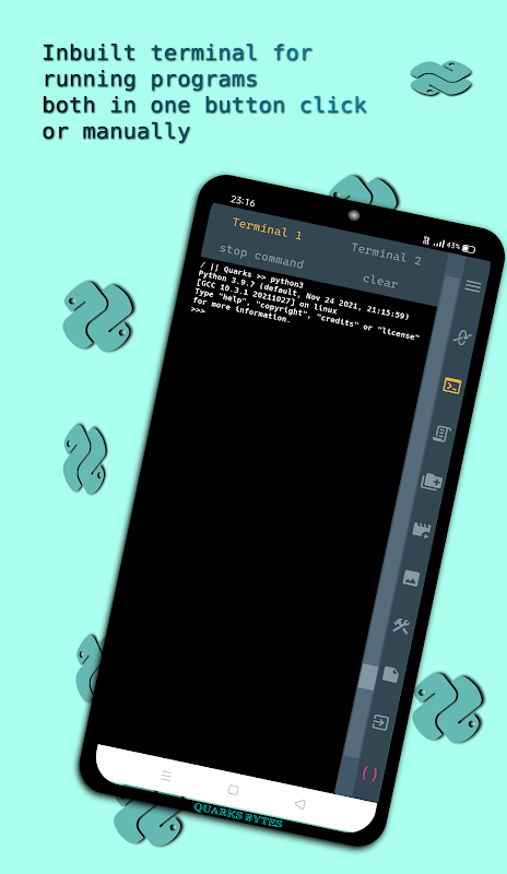 Pełne środowisko IDE języka Python ze środowiskiem Linux i interpreterem języka Python na systemie Android.