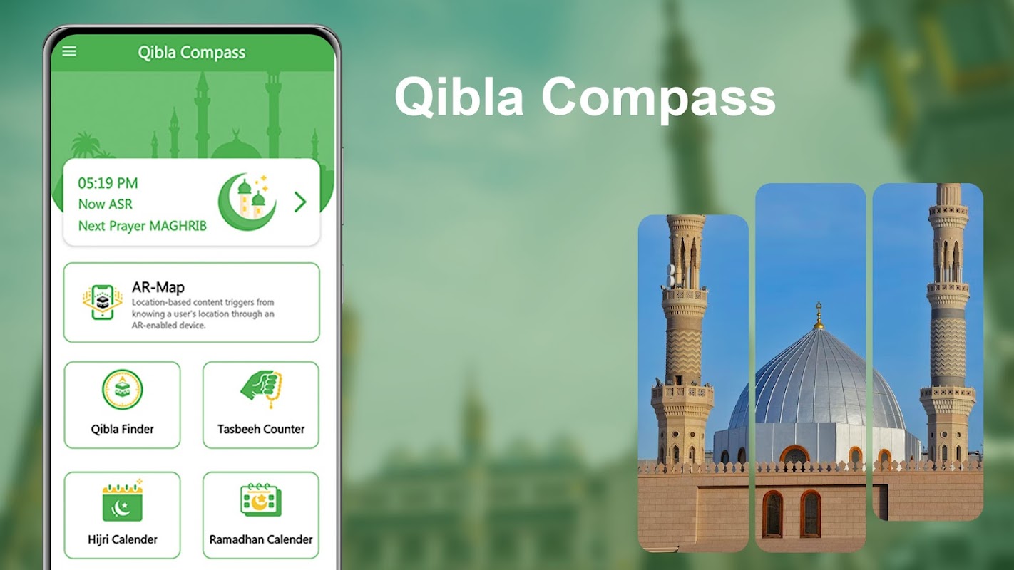 Znajdź kierunek Qibla za pomocą kompasu Qibla, czasu modlitwy i ahdan