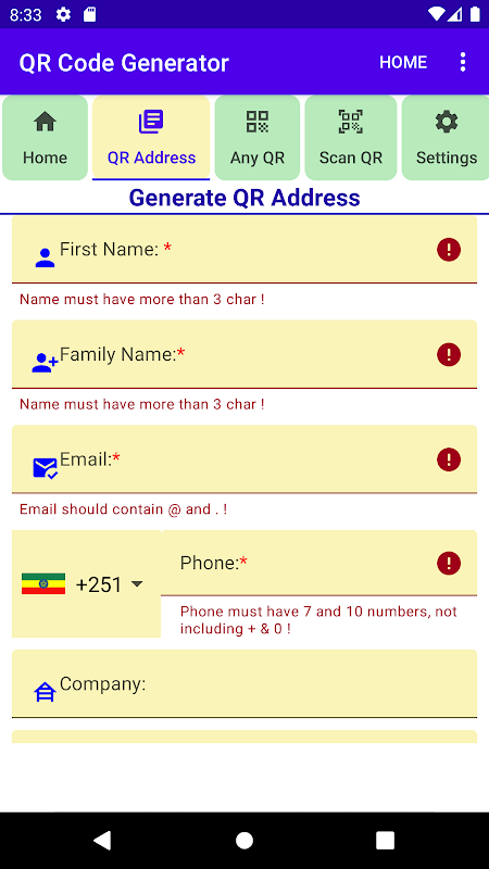 Odczyt i wygenerowanie kodu QR obsługującego vCard
