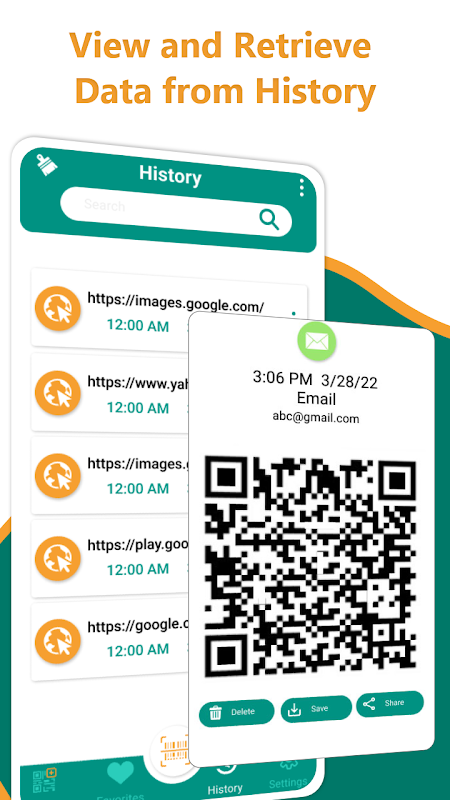 Users can keep the code and barcode in their favorites for further use. Instead of wasting the time finding it from the gallery, the user can simply click on the favorite icon and use the code any time he /she wants. This Barcode Scanner-QR Code maker App also saves the history of codes and barcodes that you generated and scanned in this Barcode generator using this device.