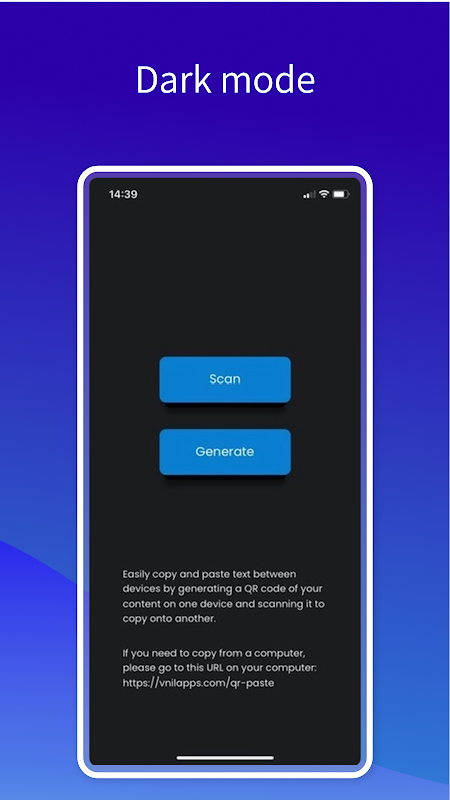 Z łatwością kopiuj i wklejaj tekst między urządzeniami, generując kod QR treści na jednym urządzeniu i skanując go w celu skopiowania na drugie.