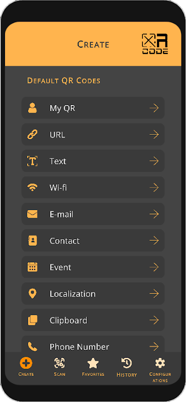 Create, read and manage your history and favorites QR codes!