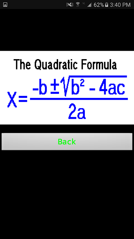 Need to see sample questions? 3 examples are provided in the app to see how to work out Quadratic Equations with: