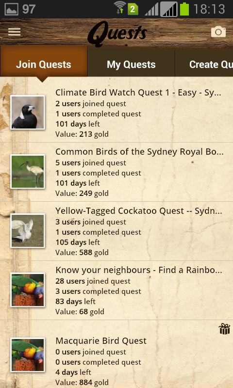 QuestaGame zabiera Cię na zewnątrz - do Twojego podwórka, lokalnego parku, szlaku turystycznego, gdziekolwiek - abyś mógł odkrywać, uczyć się i pomagać w monitorowaniu bioróżnorodności. Dołącz do zadań i rywalizuj z innymi graczami, aby fotografować zwierzęta i rośliny na wolności i ostatecznie pomóc stworzyć zrównoważoną przyszłość.