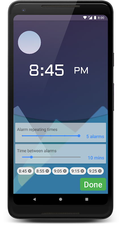 Trzeba tylko wybrać czas, liczba alarmów i czas pomiędzy każdym alarmem i aplikacji będzie ustawić je za pomocą jednego kliknięcia