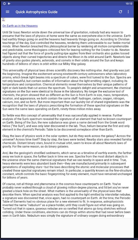 While you wait for your morning coffee to brew, for the bus, the train, or a plane to arrive, this app will reveal just what you need to be fluent and ready for the next cosmic headlines: from the Big Bang to black holes, from quarks to quantum mechanics, and from the search for planets to the search for life in the universe.