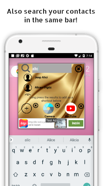 You will reach the desired apps or contacts from any menu on the phone with one touch open interface. Also you can drag the one touch button anywhere on the screen. Then fast find the application or contact you want from the search bar. Application and contact search was never easier with this assisttant quick search tool. The result will be shown as a whole list when you press a character and will be automatically refreshed. Then you can open the app or contact with just one click on the result. Quick tap, quick launch, quick access, fast finder, fast search, quick find, easy search, quick assist, quickshortcutmaker, best android launcher, quick launch