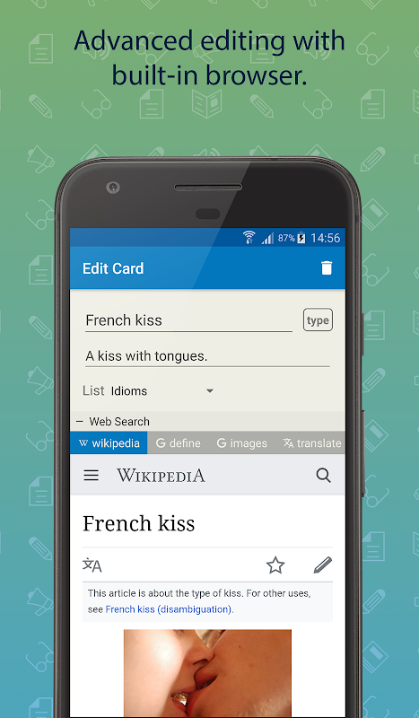 - Dodaj swoją definicję lub użyć przeglądarki wbudowanej w celu znalezienia ich znaczenie, tłumaczenie i obrazów.