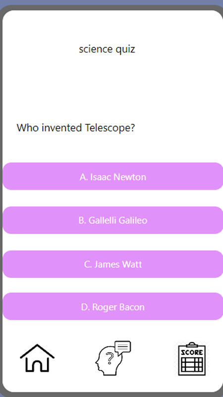 Ta aplikacja sprawdza Twoją wiedzę na trzy różne tematy, każde z 2 pytaniami (geografia, nauki ścisłe i sport).