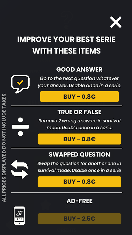 Zapoznaj się z konkretnym tematem quizu i poznaj zabawne fakty z każdym pytaniem. Lub wybierz tryb rywalizacji, w którym celem jest uzyskanie największej serii kolejnych poprawnych odpowiedzi z losowo wybranymi pytaniami z 20 tematów. W obu trybach gry będziesz miał 15 sekund na odpowiedź na pytanie.