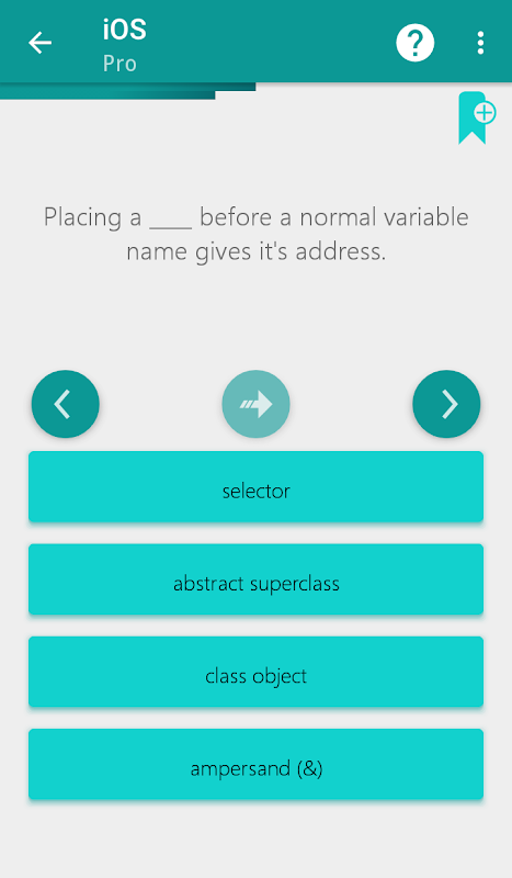 QuizApp also comes with the Bookmark option, where you can bookmark your questions (during the quiz) and review them later from the "Bookmarks" option in the options menu.