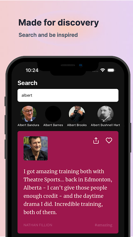 - Udostępnij: bez wysiłku rozpowszechniaj inspirację, dzieląc się ulubionymi cytatami z przyjaciółmi i obserwatorami w mediach społecznościowych, komunikatorach lub za pośrednictwem poczty elektronicznej.