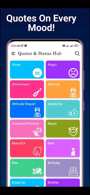 Quotes & Status Hub oferuje bogatą kolekcję cytatów, które pomogą Ci utrzymać inspirację i motywację. Dzięki ponad 85 000 cytatów w ponad 100 kategoriach możesz odkrywać inspirujące przesłania, zapisywać ulubione i łatwo się nimi dzielić. Wszystkie funkcje działają w trybie offline, dzięki czemu Twoja codzienna inspiracja jest zawsze dostępna.