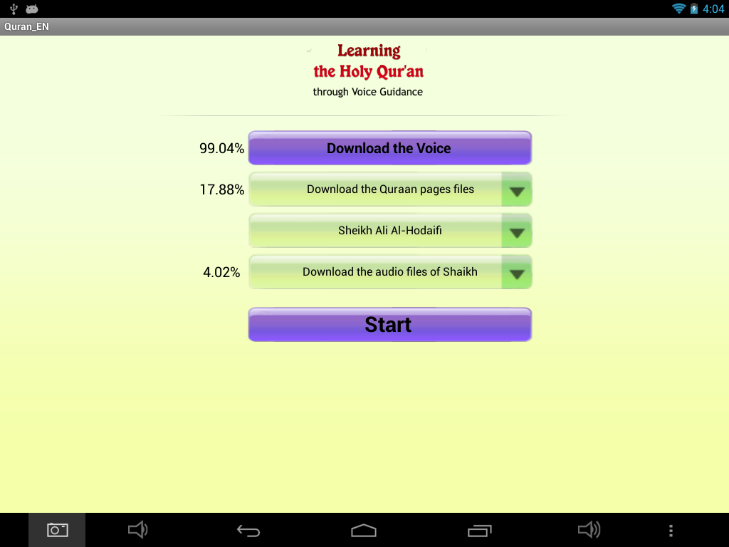The program contains 6 readers Hafs from Asim interpretation with a soft voice in Arabic is an innovative way to help people with visual disabilities and those who are ignorant of reading instruction in the Koran either category visually impaired or blind. Has been taken into account in the design of the program to be simplified as much as possible to make it easier for the average person to deal with him without having to computer skill. It can also take advantage of voice guidance other categories of users such as: illiterate (who does not know how to read) as they can to reach the required Sura and listen to them through voice guidance. The same applies to young children who have not mastered reading skills.