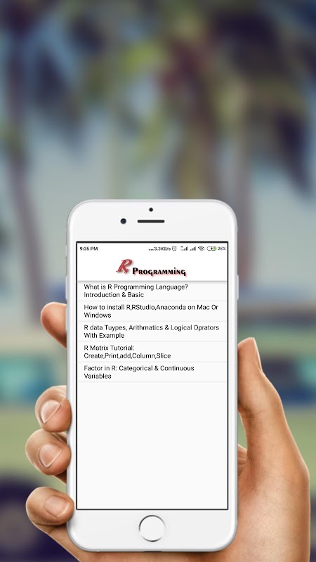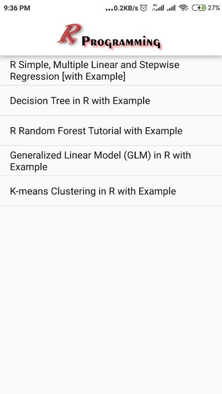 Whether you are an experienced programmer or not, this Application is intended for everyone who wishes to learn the R Programming language. R Tutorial is a complete application for those who want to learn R easily and for free. This application provides a tutorial for beginners as well as a working professional. R Tutorial application provides a good understanding of Data Science. This step-by-step guide is letting you know each aspect of R.