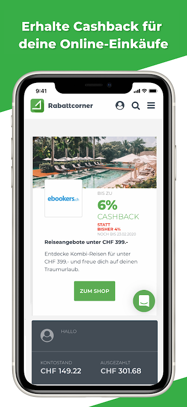 Cashback to kwota pieniędzy, którą otrzymujesz z powrotem za zakupy za pośrednictwem naszej platformy. Jeśli korzystasz z naszej aplikacji do zakupów online w jednym z naszych sklepów partnerskich, otrzymujemy prowizję, którą się z Tobą dzielimy. Gdy tylko złożysz zamówienie, transakcja i kwota zwrotu pojawią się na Twoim koncie użytkownika. Od łącznej kwoty 20 CHF możesz przelać pieniądze na swoje konto bankowe lub PayPal. Bardzo proste i nieskomplikowane!