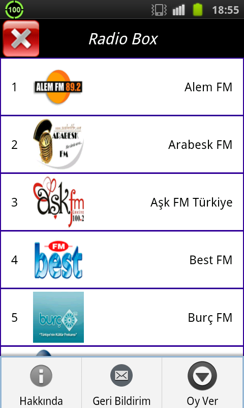Bu uygulama ile internet (Wi-Fi veya 3G) üzerinden shoutcast radyoları dinleyebilirsiniz. Şu anda 39 tane yerli ve yabancı radyo bulunmaktadır. Program mpeg, aac ve aacp radyo yayınları çalabilme özelliğine sahiptir. Eğer bildiğiniz yayınlar varsa bana iletirseniz eklemeye çalışırım. Program içinden "Geri Bildirim" menü butonuyla mail olarak iletebilirsiniz.