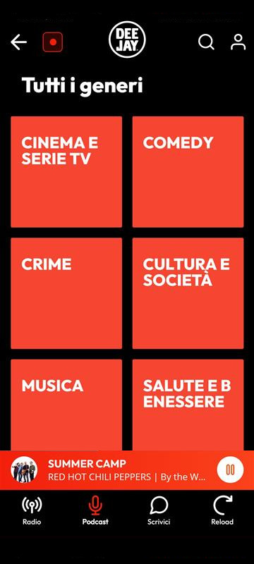 Sekcja „Podcast” jest poświęcona oryginalnym seriom audio Radio Deejay, z ofertą bogatą w różne gatunki i zawsze aktualizowaną.