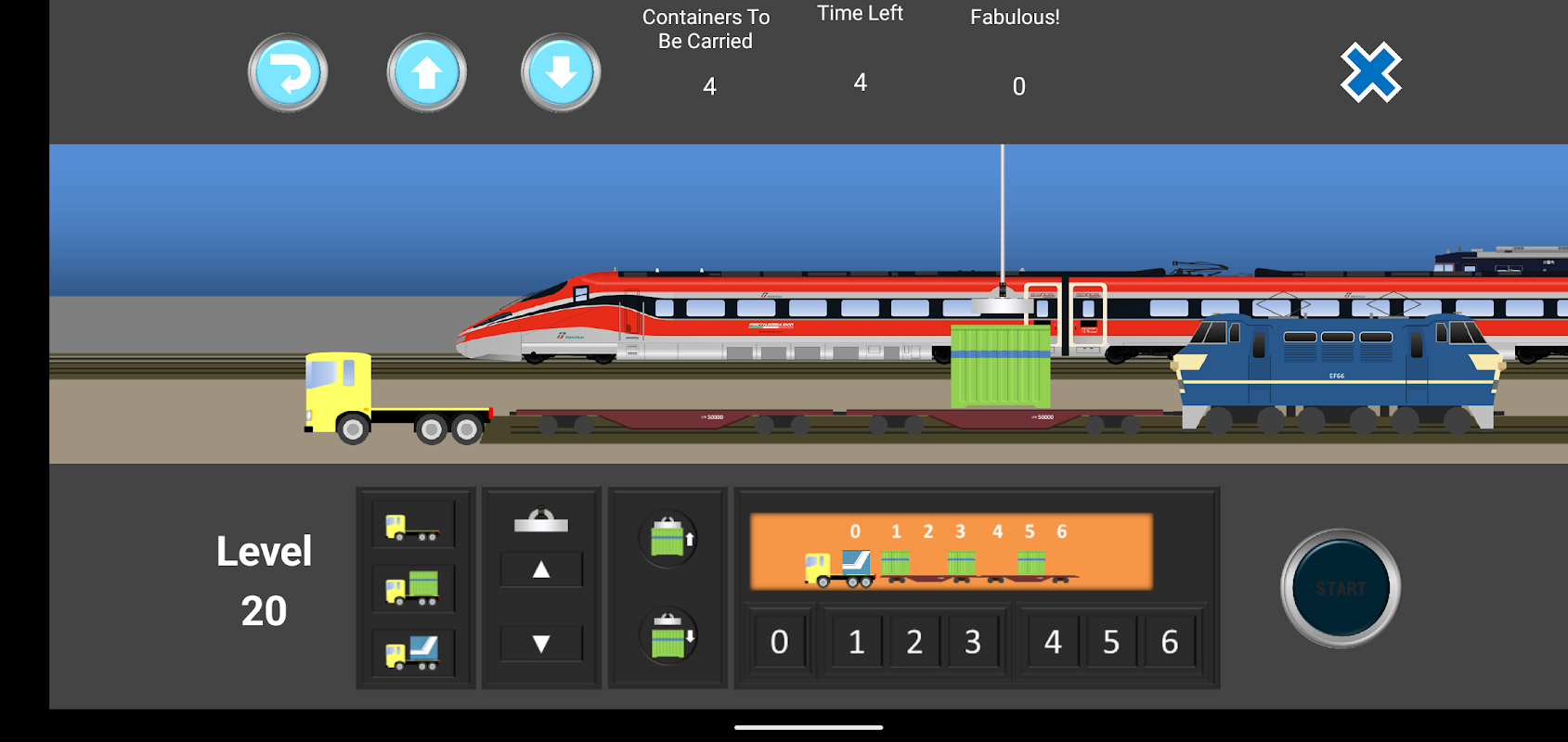 Ostatecznym celem jest osiągnięcie poziomu 20 i zebranie łącznie 20 różnych typów pociągów. Aby to osiągnąć, musisz wykazać się umiejętną obsługą dźwigu i precyzyjnym ładowaniem kontenerów.