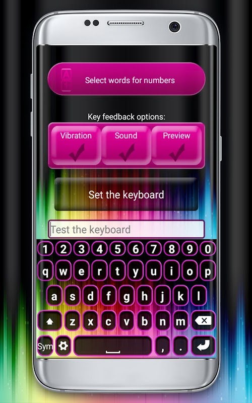 Jeśli kochasz zmieniając kolory klawiszowych, zainstaluj Tęcza Kolorów Klawiatury i znajdź swój idealny klawiaturę tęczy emotikony! Te żywe kolory klawiatura będzie wyróżniać się na ekranie telefonu! Miłej zabawy pisania wiadomości na temat tych pięknych klawiatury tle motywów! Będziesz miłował swego nowego kolorowe emotikonom klawiatury! Pobierz nową aplikację klawiatury już dziś!
