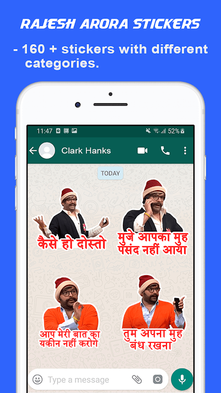 Roześmiane memy Rajesh arora pomogą Ci uprzyjemnić rozmowę dzięki wielu naklejek ze śmiechem w języku hindi.