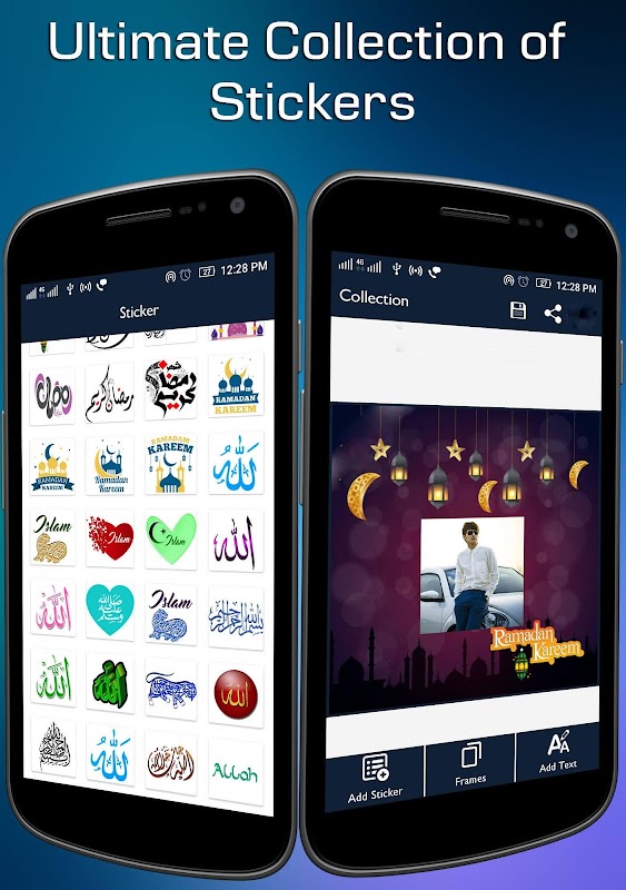 Ramadan photo Frames includes frame like ramadan wishes messages, Eid wishes images ,Love DP, Eid Profile picture and Eid photo frame etc. This app lets you make a photo frame with your photo in it and with Ramdan mubarak Wishes. So make as many photo frames you like and send it to all your friends and family members. With this app you can share your beautiful creations and greetings in a different, beautiful and stylish way.
