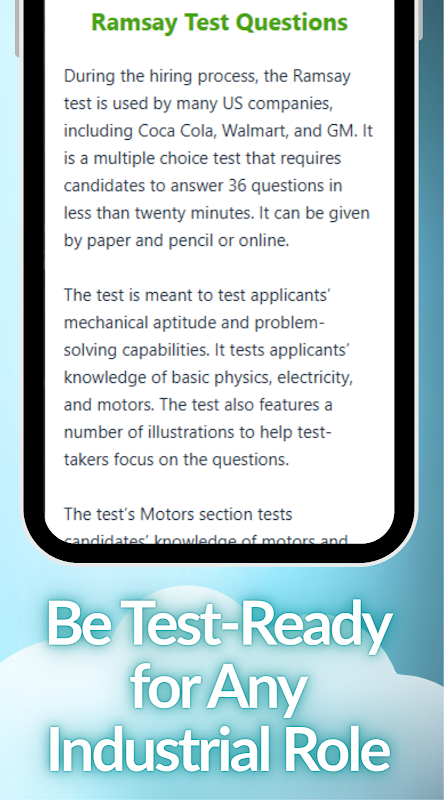 Przygotowujesz się do egzaminu Ramsay Mechanical Aptitude Test lub jakiejkolwiek oceny umiejętności przemysłowych? Ta aplikacja to kompleksowe rozwiązanie, które pozwoli Ci opanować egzamin i wyróżnić się w swojej aplikacji o pracę. Dzięki ponad 1000 realistycznych pytań i jasnym wyjaśnieniom zrozumiesz koncepcje stojące za każdą odpowiedzią, a nie tylko je zapamiętasz.