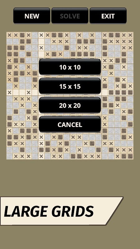 - Rozmiary łamigłówki 10x10, 15x15 i 20x20.
